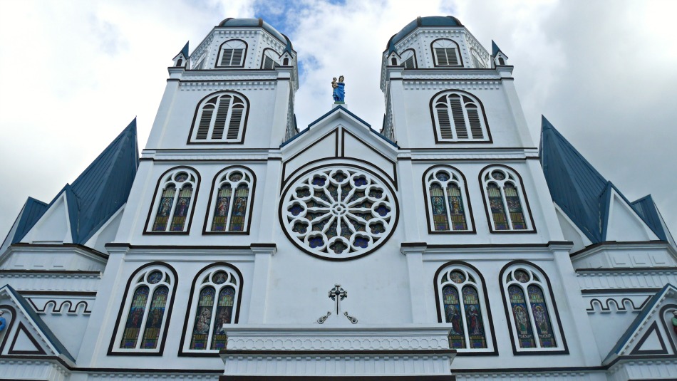 By this point we were starving hungry as we hadn’t eaten from breakfast, and we didn’t have enough time to eat in a restaurant, so we did the classic desperate tourist act of going to the nearest McDonalds and wolfing down a big mac and nuggets. We’d had a week of traditional Polynesian food and so we didn’t feel too bad about having one maccas meal! After quickly eating we walked around the corner to the stunning Catholic Cathedral.
