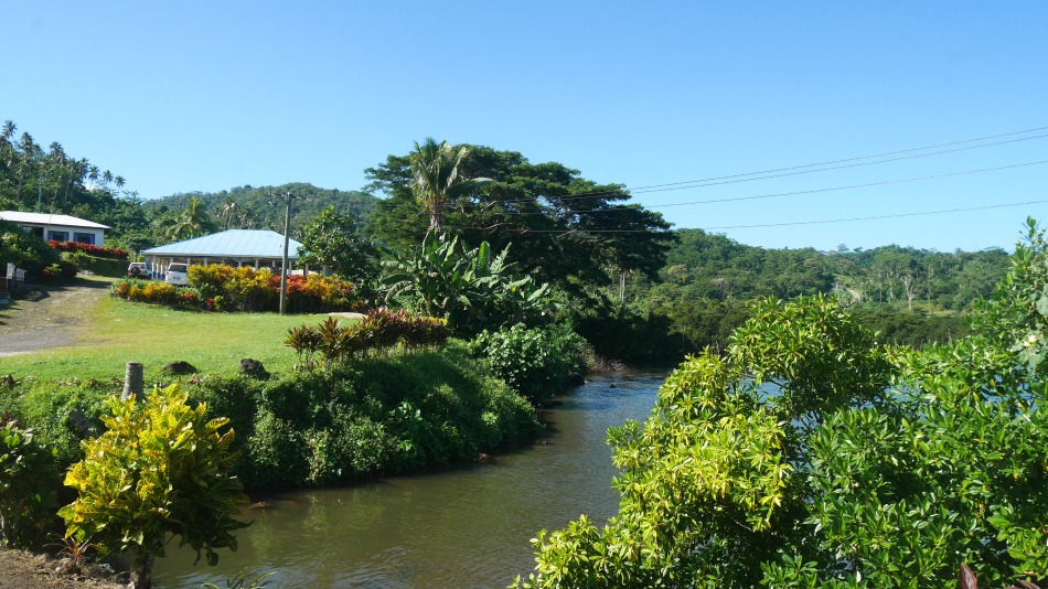 We drove through the mountains and lush rainforest and a forest of palm trees. We drove down tiny country tracks and up steep hills and through thick vegetation alongside trickling streams and waterfalls. We passed wild pigs snuffling on the roadside, and stray dogs running in-front of the car constantly, and traditional Fales and beautiful ornate churches every 50 yards, that we heard are packed out every Sunday morning.