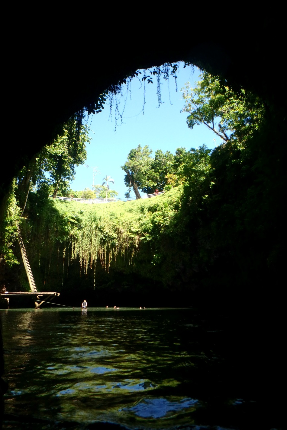 Eventually we found To Sua Ocean Trench, the most famous site in Samoa, and were a liiiiittle disappointed. We got there around lunchtime and it was low-tide, so the water was murky and a bit green/brown, rather than the sparkling emerald it usually is. Mother Nature was against us, and as such the photos aren’t as epic as some you will see online. But we still loved it and had great fun! A coupla tips though: the ladder is steep, terrifying, and slippery, the current is VERY strong so hang on to the rope or rock, and, be careful if you swim into the cave (see previous tip on current).