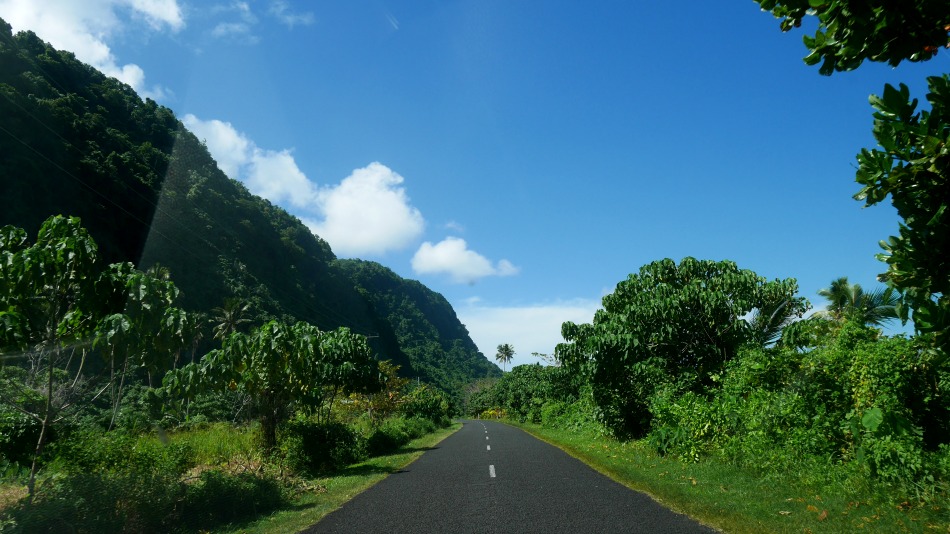 The roads were fairly empty the entire way around the island, but especially on the west side. In my opinion the beaches on that side are the best; the stretches of white sand and crystalline waters as we drove along the road that wraps around the island’s coastal edge made our jaws drop. Sadly I was driving so I didn’t get many photos of the drive, but we pulled over a few times to get some. We also saw one of the famous Samoan painted buses! Each one is painted a unique design, and apparently if the bus is full the locals sit on each other’s laps to make room for everyone.