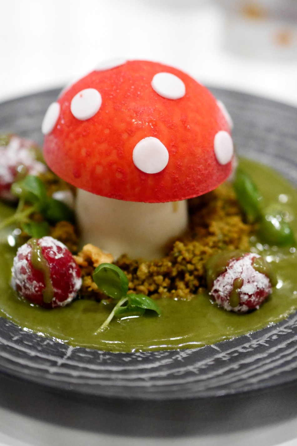 Everything was delicious, although the mac & cheese was very overcooked which was disappointing. I have a super sweet tooth though and can’t stand finishing a meal with a savoury taste in my mouth, so decided to be the odd one out and have a dessert. I have no shame when it comes to food. I chose the signature Harry’s Toadstool, which was a delicious combination of white chocolate and mascarpone mousse in the shape of a toadstool, with fresh raspberries, iced-vanilla parfait and pistachio biscotti crunch and pistachio sauce.