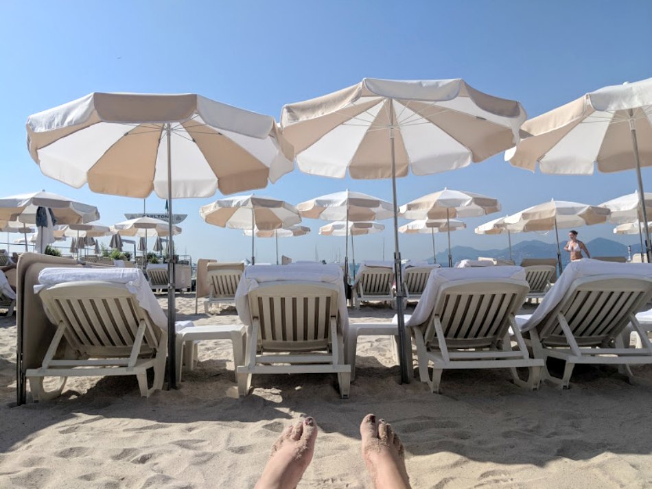 The following day was our one full day in Cannes, and so we decided to spend it on the beach, and then planned to see the rest of the city the next morning. This worked out great as after a busy and hectic few months, I was in desperate need of some chill out time. Hotel Martinez currently don’t have a beach club as theirs is being renovated, so they have a reciprocal agreement with The Carlton hotel that we took full advantage of! It was only 20 Euros each for a day bed, sunshade umbrella, and towel, and the beach reminded us of the beaches in Perth – beautiful soft sand and crystal-clear and calm waters to swim in. We spent the morning going from the sunbed, to the water, back to the sunbed, back to the water.